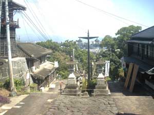 ![]() 本妙寺。登ったところが本殿。綾子ねーさん目線で。 階段を下りていく視界には、熊本の街並みが広がります。爽快ですね。 ![]() |
