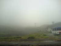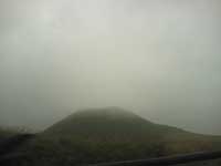 ![]() 米塚ぽっこり(左)。 ロープウェイ乗り場から山頂(火口)を見上げて霧具合に「ほえー」となりました。(右) 今日はガスが出ていて火口までは行けません。私がしょんぼり。 |